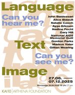 Die Ausstellung Language/Text/Image zeigt Kunstwerke von den 1950er-Jahren bis heute, bei denen das Verhältnis von Sprache, Text und Bild thematisiert, reflektiert und auf seine gesellschaftlichen und politischen Dimensionen hin befragt wird. Mit künstlerischen Mitteln werden die Möglichkeiten untersucht, etwas sag-, sicht- und hörbar zu machen.