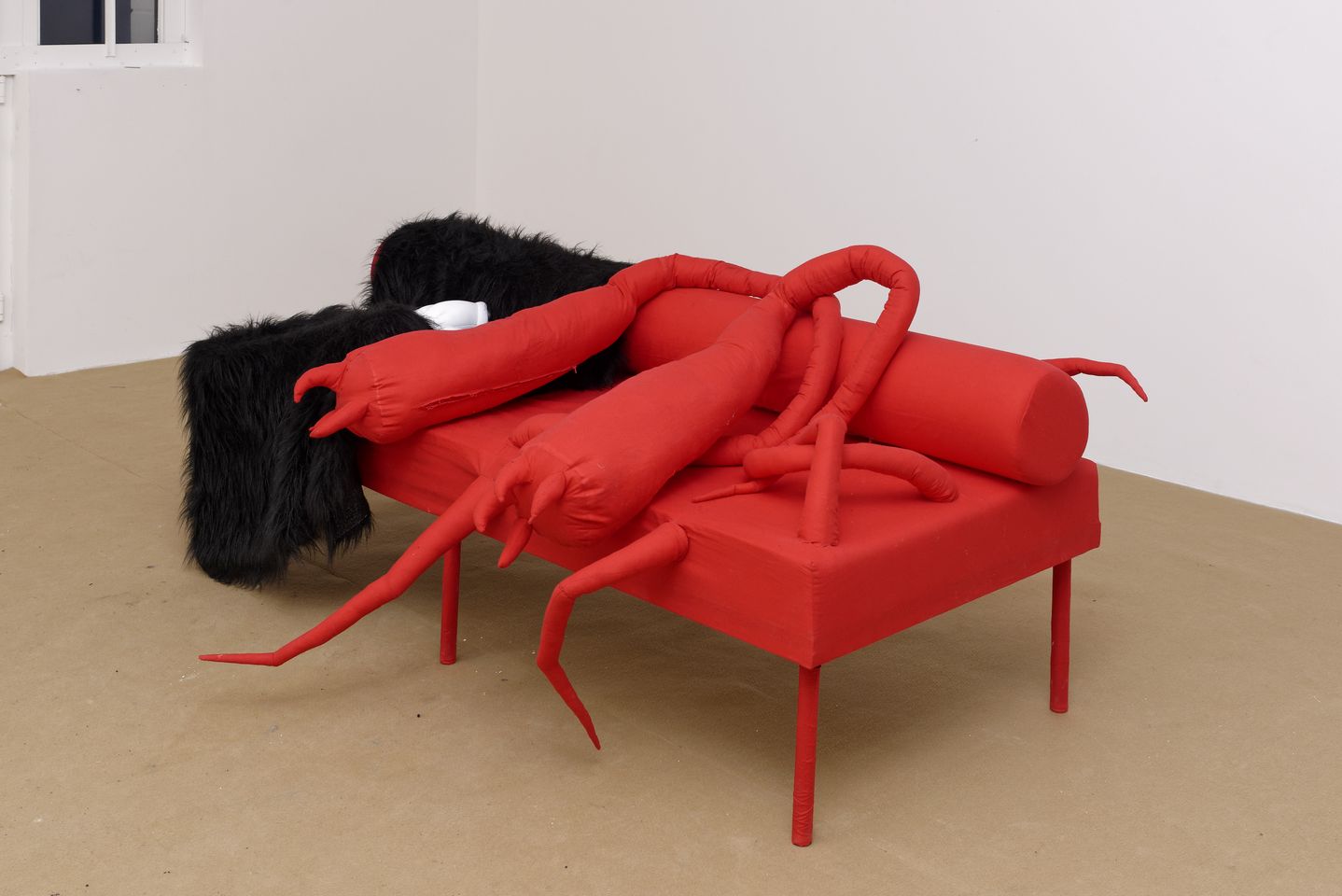 Estonian artist Kris Lemsalu (*1985 in Tallinn, Estonia) is a sculptor and ceramic artist, working with the media of installation and performance. After studying at the Estonian Art Academy in Tallinn, she continued her education at art academies in Copenhagen and Vienna. She gained attention for her work over the past few years with performances such as one at Frieze in New York in 2015, when she lay under a giant ceramic turtle shell for more than three hours, with only her naked feet, hands, and a bit of hair sticking out. This created a provocative contrast between the weight of the shell of the fictitious turtle, a visual metaphor of the metamorphosis from human to animal and vice versa. At the same time, this spectacular public performance could be read as a manifest of loneliness, isolation, and repression of the individual within today’s society, and especially in the business of art. In other works, Lemsalu addresses the metamorphoses of the body and its biological and energetic processes, in which she makes her direct mental and physical approach the main criterion of her work.