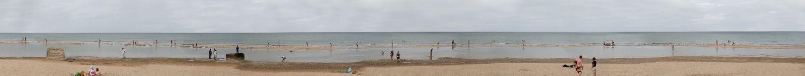 These photographs were not taken with panoramic lenses; rather, the works consist of a line-up of single central perspective images—in most cases, several thousand. Without their vertical edges, however, they unite to form one fixed, visual space. The photographed units of time are therefore “welded” together to create the illusion of an extended moment in time.
