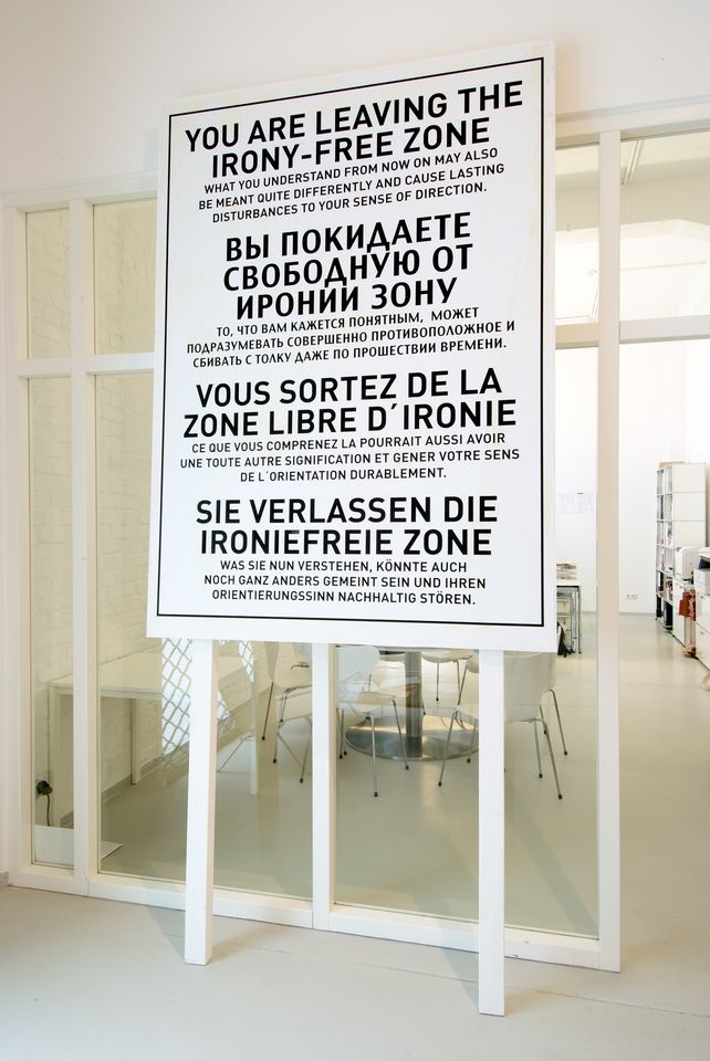 As a theme, irony gives rise to exemplary questions about what is required for understanding today’s art. The exhibition The Fate of Irony examines the many ways to employ ironic strategies in contemporary art. In frequently humorous ways, the artists selected demonstrate a critical attitude to social and political contexts of art, while at the same time questioning the system of art itself. Another topic of their investigations is the intercultural understanding of verbal and visual irony.