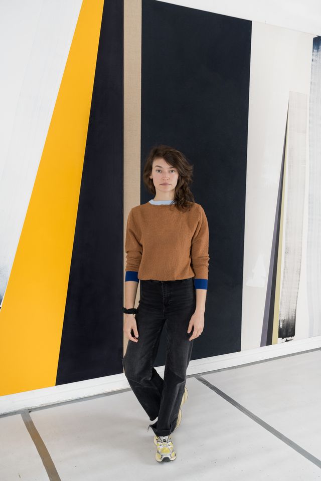 Sophie Heinrich’s (*1991 in Cologne; lives and works in Düsseldorf) artistic practice is focused on abstract painting. Her works adopt a reduced formal vocabulary, centred around colour, line and materiality. For her, painting is a means of visual and material thinking: it lends visible and sensory form to processes such as accident, decision-making and the exploration of uncertainty. Planes of clear colour contrast with organic lines and brushstrokes that taper off, layers of matt paint dissolve into the untreated canvas, while lacunae and ruptures inject rhythm into the pictorial surface.